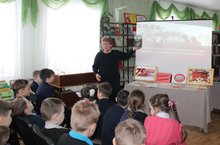 Библиотекарь рассказала детям о деятельности разведчиков, о партизанском движении в годы Великой Отечественной войны, о медали «Партизану Отечественной войны», о подвигах пионеров-героев Марата Казея, Лёни Голикова, Зины Портновой и других детей-героев, сильных духом.