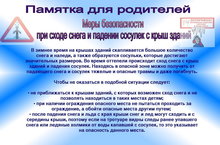 Памятка по безопасному поведению во время падения снега исосулек с крыш зданий.ОСТОРОЖНО СХОД СНЕГА С КРЫШ! -
