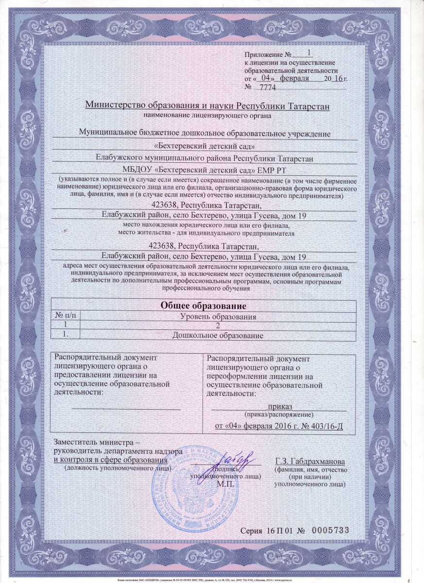 Муниципальное бюджетное дошкольное образовательное учреждение "Бехтеревский детский сад" Елабужского муниципального района Республики Татарстан/Татарстан Республикасы Алабуга муниципаль районы «Бехтерево балалар бакчасы» муниципаль бюджет мәктәпкәчә белем бирү учреждениесе