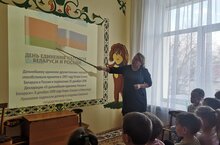 Өлкән һәм әзерлек төркемнәре тәрбиячеләре Россия һәм Белоруссия халыклары дуслыгына багышланган әңгәмәләр һәм тематик дәресләр үткәрделәр. Тәрбияләнүчеләр Белоруссия халыкларының тарихы һәм традицияләре, дәүләт символлары, илнең табигате һәм мәдәнияте белән таныштылар. Белоруссия һәм Россиянең тарихи берләшмәсе. Халыклар бердәмлеге көне гомуми тарихта истәлекле дата, туганлыкның якты символы!