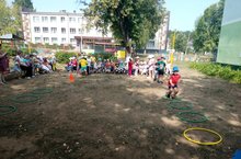 Лето пора игр и движения на свежем воздухе. В эту пору особое внимание уделяется укреплению здоровья и улучшению физической подготовки. Дети в форме игр учаться закидывать мешочки в цель, прыгать на скакалке, ловко увертываться от мяча или наоборот ловить его. Разнообразие игровых упражнений настолько увлекает детей, что время проведенное в саду пролетает незаметно. /