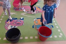 -игра «Достань жемчужину», дети ловили из воды жемчужины и складывали в своё ведёрко.