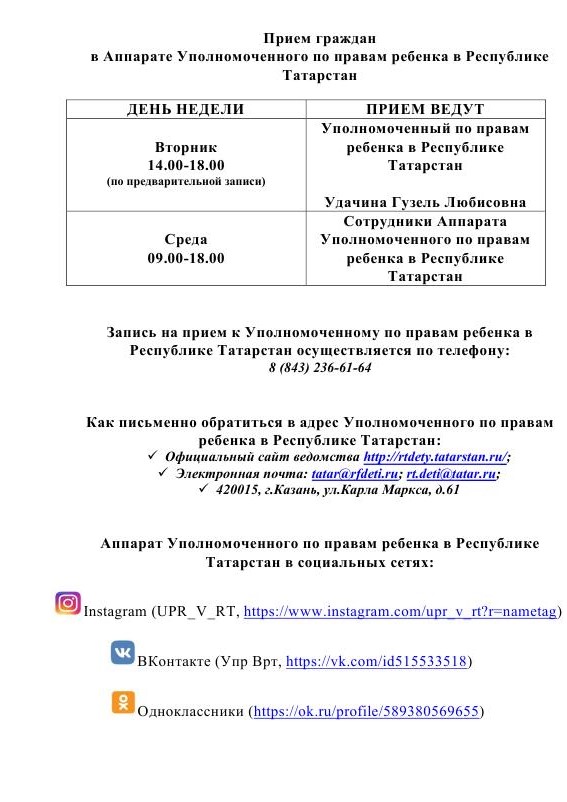 Уполномоченный по правам ребенка по РТ УДАЧИНА. Г. Л.