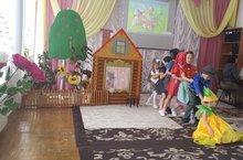 А еще это игра, в которой в полной мере проявляется творческая активность ребенка дошкольного возраста. Декада театра началось в ДОО где дети с младшего возраста начали показ сказки «Курочка ряба». Детей приобщают и формируют положительное отношения к театральному искусству.