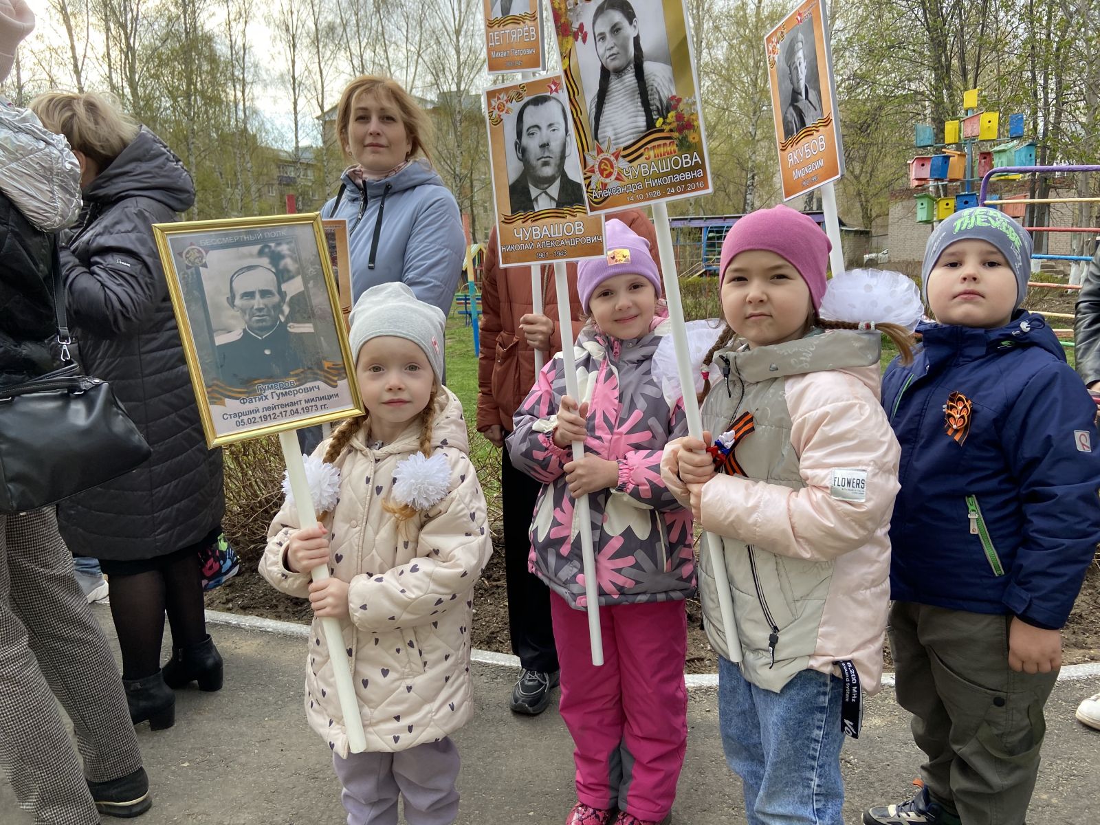 «Үлемсез полк» акциясе-ул безнең бабаларыбызны, бабаларыбызны, әбиләребезне, әби-бабайларыбызны һәм Бөек Ватан сугышында катнашкан барлык кешеләрне искә алу. Безнең тәрбияләнүчеләрнең гаиләләрендә дә үз геройлары бар.