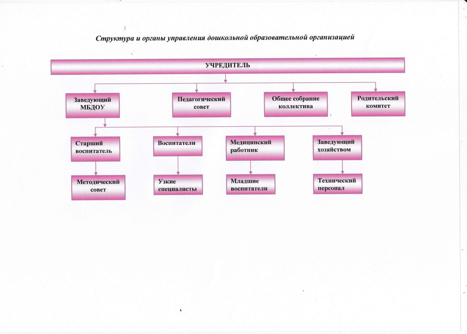 Организационная структура управления детским садом представляет собой совокупность всех его органов с присущими им функциями.
