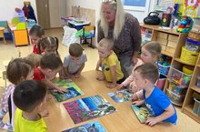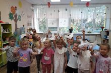 В дошкольном саду продолжает работу клуб "Вместе с семьей", в рамках, которого сегодня дети познакомились с художницей- бабушкой, одного из воспитанников. Бабушка познакомила детей со своими картинами, рассказала о выставках, о художниках. В конце ребята постарались нарисовать совместную картину.
