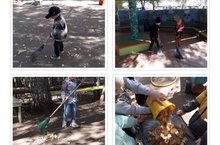 Балалар, тәрбиячеләр белән бергә, үз участокларын тәртипкә китерәләр, коелган яфракларны җыялар, гади эш күнекмәләренә өйрәнәләр. Хезмәт тәрбиясе балалар бакчасыннан башлана.