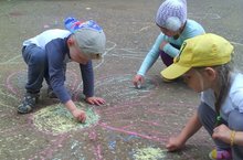 Сегодня в нашем детском саду проводился смотр - рисунков на асфальте, приуроченный Всемирному дню окружающей среды,дети средних, старших и подготовительных групп с удовольствием рисовали цветными мелками.