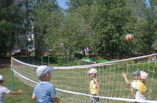 В летний оздоровительный период особое внимание уделяется здоровьесбережению дошкольников. Дети с удовольствием играют в подвижные игры с элементами спорта. Одним из любимых развлечений ребят является детский волейбол.