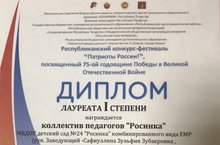 Коллектив педагогов МБДОУ детский сад №24 "Росинка" комбинированного вида стал Лауреатом I степени.