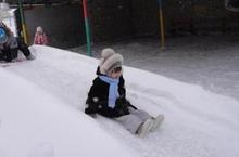 Построенные ледяные горки на всех участках детского сада пользуются большим спросом среди детей.