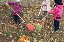 Пышным сказочным ковром!Осень - пора листопада. Дети старшей группы №8 с радостью убирают листья на участке.