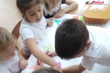Менә көз дә килде. Тирә-юньдә барысы да буяулар белән пестрит! Көз барысын да тирә-юньгә яраткан төсләрен бизи. Хәзер безнең балалар бакчасында яшел, сары, кызыллар тора. Бордовые агачлар һәм куаклар. Каеннар-алтын, Миләшләр-кызыл. көз безгә төрле төстәге буяулар бүләк итә һәм соңгы кояш нурлары белән сөендерә. «Әкият» төркеме балалары төрле төстәге агачлар һәм куаклар арасында йөрергә яраталар. Аяк астында төрле төстәге яфраклар шуршат. Без тыңлыйбыз, аларны шуршание һәм уйныйбыз, төрле уеннар белән сүзләр һәм звуками. Һәр сәяхәткә чәчәкләр палитрасының төрлелеген күзәтәбез һәм табигатьтә кызыл , сары һәм яшел төсләр генә түгел, ә сак, пурпур , фуксия һ. Б. лар булуын белдек.
