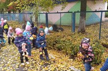Көз-яфрак вакыты. 8-нче номерлы өлкән төркем балалары бик теләп яфракларны җыештыралар.