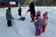 Веселее горку строить!Горка ледяная, скользкая такая,
