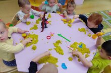 Всем известно, что игра для дошкольника, это движущая сила, которая помогает ребенку познать и освоить многогранность огромного, не совсем ещё понятного для него мира. Сегодня дети группы номер два "Утята" с увлечением играли кинетическим песком, казалось бы это только игра, но как важно для маленького человечка создание чего то нового в концепции "Я - творец"
