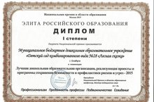 Поздравляем коллектив ДОУ с победой во Всероссийском конкурсе "Безопасности в образовании", который проводит Элита Российского образования. номинация: лучшая дошкольная образовательная организация, реализующая проекты и программы сохранения безопасности и профилактики рисков и угроз - 2015.