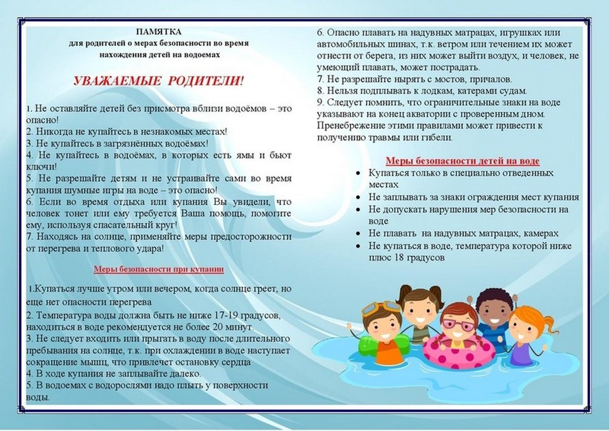 Памятка для родителей о мерах безопасности во время нахождения детей на водоемах