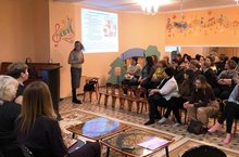 Сегодня родители дошколят-выпускников были приглашены на встречу с педагогами начальных классов школ №8 и №9 г.Елабуга. Встреча прошла интересно и познавательно для родителей. Были обсуждены вопросы приёма в школу, условия обучения в вышеуказанных заведениях. Вниманию родителей были представлены презентации и интересные рассказы о школах. Также педагоги ответили и на интересующие родителей вопросы. Бүген мәктәпкәчә яшьтәге балаларның әти-әниләре Алабуга шәһәренең 8 нче һәм 9 нчы мәктәпләренең башлангыч сыйныф укытучылары белән очрашуга чакырылган иде. Очрашу ата-аналар өчен кызыклы һәм мавыктыргыч үтте. Мәктәпкә кабул итү, югарыда күрсәтелгән уку йортларында уку шартлары буенча фикер алыштылар. Ата-аналар игътибарына мәктәп турында презентацияләр һәм кызыклы хикәяләр тәкъдим ителде. Шулай ук педагоглар ата-аналарны кызыксындырган сорауларга да җавап бирделәр.