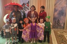 4 нче татар төркемендә режим вакытында балалар тәрбияче апалары белән бергәләп, «Кызыл калфак» әкиятен сәхнәләштерделәр. Әби ролендәге тәрбияче апалары белән уйнап балалар әдәби текстны сәнгатьле итеп сәхнәләштерергә өйрәнделәр,сөйләм телен үстерделәр,туганлык , олыларга хөрмәт хисләре тәрбияләнде.