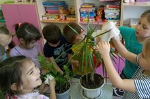 Бүген 7 нче төркемдә " Бүлмә үсемлекләре дөньясы» дигән дәрес үткәрделәр. Анда балалар бүлмә үсемлекләренең күптөрлелеге турында күзаллауны киңәйттеләр. Бүлмә гөлләрен белергә һәм дөрес итеп күрсәтергә өйрәнделәр. Бүлмә үсентеләрен карау белән бәйле һөнәрләр турында сөйләделәр. Бүлмә үсемлекләренең төп ихтыяҗлары турында белемнәрен аларның үзенчәлекләрен исәпкә алып ныгыттылар. Үсемлекләрне карау күнекмәләрен камилләштерделәр. Өлкәннәргә бүлмә үсемлекләрен карау буенча ярдәм итү теләге формалаштырылды. Табигатькә сакчыл караш тәрбияләделәр.