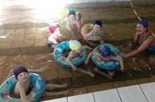 В младшей группе №1 в этом году начались занятия по плаванию в бассейне. На первом занятии детки познакомились с правилами поведения в бассейне и получили огромное удовольствие от воды.