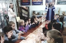 Встретила их девушка в народном костюме, которая рассказала о сувенирах, загадывала загадки, на которые дети отвечали с удовольствием.