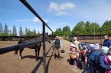 Сегодня дети подготовительных групп №10,12,13 совершили пеший поход на городской ипподром. Увидев лошадей в конюшне, детской радости не было предела. Экскурсию провела тренер с/к «Кентавр» - Зайнеева Е.В. Она рассказала о лошадях, об их уходе, кормлении, достижениях. Дети побывали в крытых конюшнях, посмотрели забеги на ипподроме, но особый восторг у детей вызвало общение с пони, которые гуляли в загоне на улице. Здесь ребятишкам разрешили не только смотреть, но и погладить этих маленьких лошадок. Выражаем благодарность администрации, тренерам с/к «Кентавр» за возможность воспитания у детей доброго отношения к животным. Спасибо!