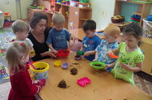 26.06. дети 1 младшей группы №3 на прогулке исследовали свойства мокрого и сухого песка.
