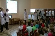 Сегодня дети подготовительных групп встретились со студентами медицинского училища. Ребята узнали очень много нового и полезного о сохранении своего здоровья: как правильно ухаживать за зубами, рассмотрели режим дня, сделали совместно зарядку для глаз и для тела, посмотрели полезные презентации и мультфильмы, приготовленные студентами. Детям было очень интересно.