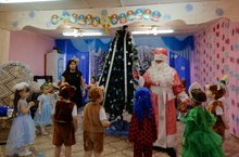 Яңа ел бәйрәмендә аюлар(төркемнең малайлары),кар бөртекләре (төркемнең кызлары)Кыш бабай һәм Кар кызы белән күңел ачтылар.Балалар янына куонакка төлке(тәрбияче Самедова С.М килде.