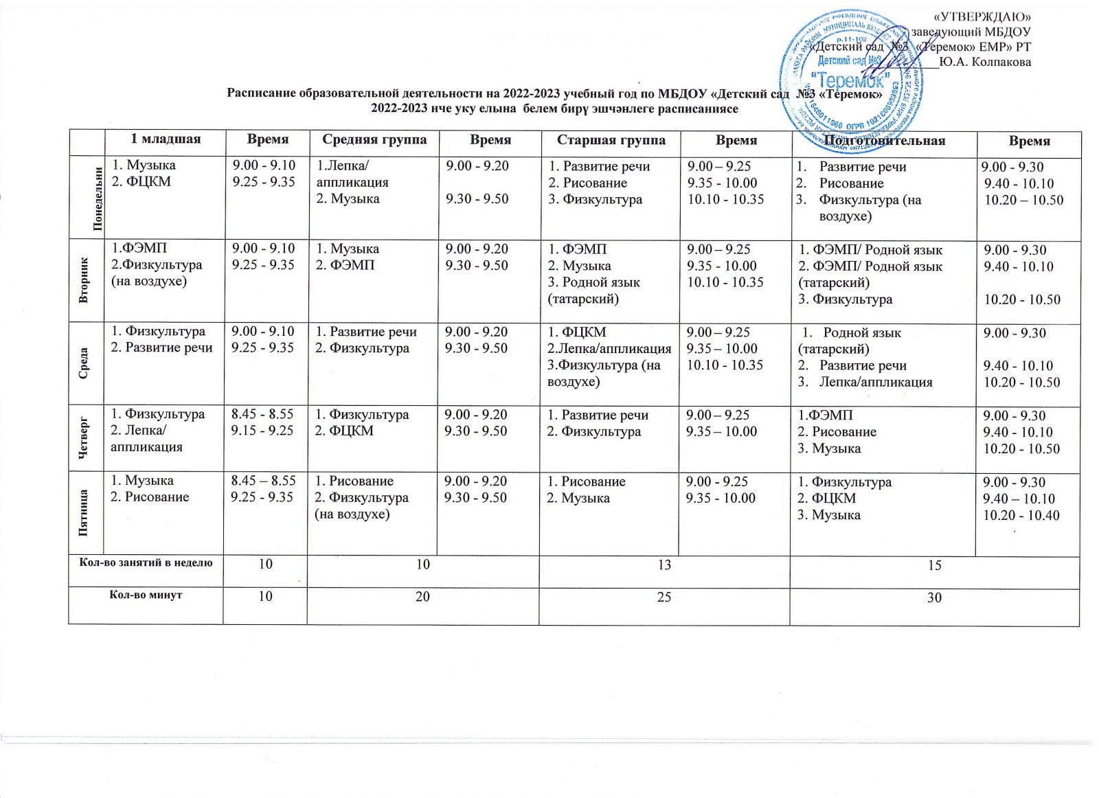 Расписание ООД на 2022 – 2023 учебный год