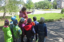 В целях закрепления знаний о правилах дорожного движения и культуры поведения на улице, сегодня, 18 мая дети средней группы №4 ходили на экскурсию к перекрёстку дорог. По дороге к перекрёстку дети ответили на вопросы: что такое тротуар и проезжая часть, кто такие водители и пешеходы, как нужно вести себя на улице. На перекрёстке они наблюдали за движением машин и пешеходов, за работой светофора на дороге. В заключение экскурсии дети пришли к выводу, чтобы не случилось беды, все должны знать и соблюдать правила дорожного движения.