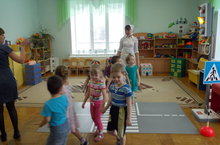 Cегодня во второй младшей группе прошло педагогическое мероприятие по ПДД. К ребятам пришел в гости зайка, попавший под трамвай, из сказки Чуковского «Айболит». Дети помогли зайке выучить правила дорожного движения, рассказали, что нужно ходить по тротуару, для чего нужен светофор, на своем примере показали, как правильно и на какой сигнал светофора переходить проезжую часть. В конце дети подарили зайке светофоры, сделанные своими руками.