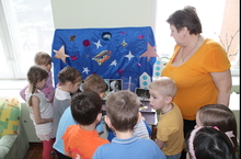Сегодня у нас прошли мероприятия, посвященные Дню космонавтики. Целью стало формирование познавательного интереса детей к истории космонавтики.
