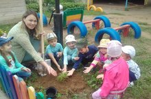 Сегодня дети средней группы № 2 решили посадить на своем участке ель. Бүген 2 урта төркем балалары чыршы утырттылар.