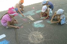 Сегодня в нашем детском саду проходит день " Юного художника". С детьми проводятся беседы: " Кто такие художники?", "Жанры живописи" и т.д. С детьми вспомнили с помощью каких средств можно нарисовать картину. Рассмотрели репродукции нашего земляка и художника И.И.Шишкина. И в завершении сами превратились в юных художников и рисовали на асфальте.
