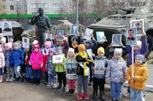 Балаларда патриотизм хисе формалаштыру, ветераннарга һәм Ватанны саклаучыларга карата мәхәббәт һәм хөрмәт тәрбияләү, балаларны безнең халыкның хәрби традицияләре һәм Россиянең хәрби данын һәйкәлләре белән таныштыру өчен, ел саен oryиңү көненә багышланган чаралар үткәрелә. безнең балалар бакчасы. Быел бәйрәм "mлемсез полк" сугышчы-интернационалистларга һәйкәлгә бару белән тәмамланды, аннары балалар бакчасы территориясендә карабодай боткасын пешереп карадылар. Балалар бик шатландылар.