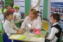 Педагог Андреянова А. П. үзенең тәрбияләнүчеләре белән (Арина К. һәм Владислав Д.)