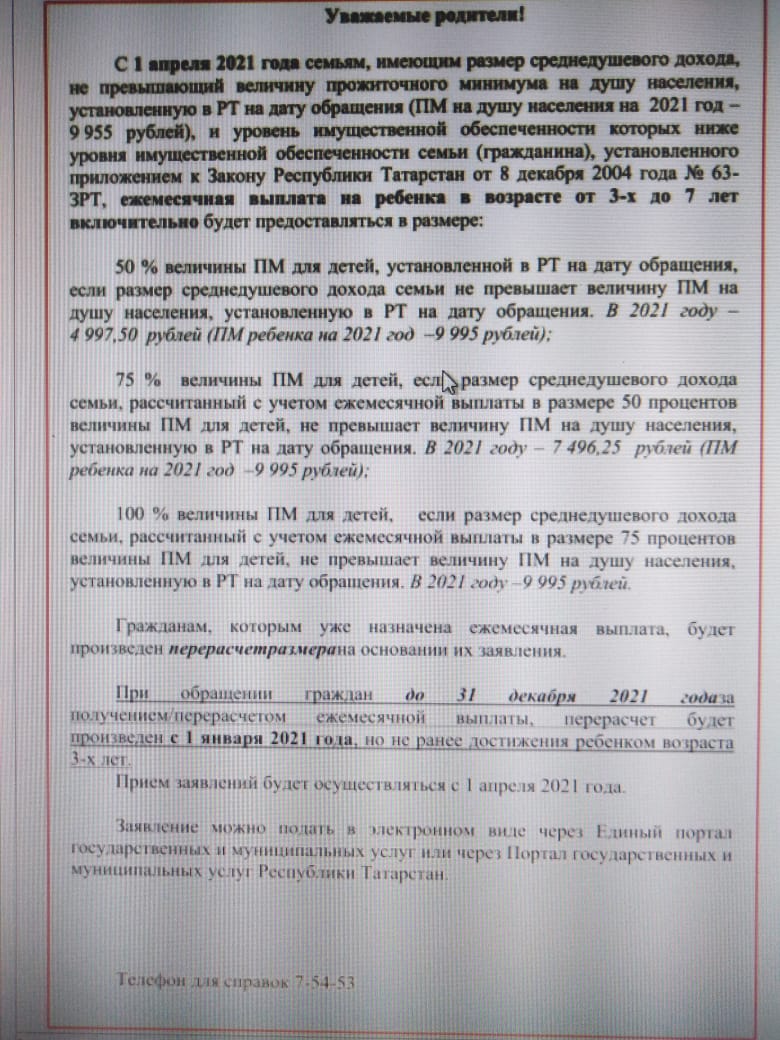 Право на получение ежемесячной выплаты на детей от 3х до 7 лет
