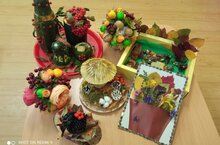 Осень - это славная пора, богатая интересными природными материалами:шишками, разноцветными цветами и листьями. Мы наблюдаем за изменениями в природе, любуемся красотой осенней природы. Это время располагает к творчеству. Работа с природным материалом заключает в себе большие возможности сближения ребенка с родной природой, воспитания бережного, заботливого отношения к ней, формирования первых трудовых навыков, развития эстетического вкуса. В группе раннего возраста №4 «Бабочки» прошла выставка осенних поделок на тему «Дары осени». Многие родители откликнулись на участие выставке. Родители с детьми очень старались, проявили фантазию, умения. На выставку были представлены интересные поделки из шишек, веток, листьев, семечек, овощей. В результате получились оригинальные поделки.