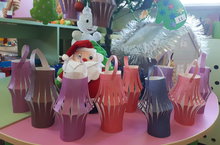№9 мәктәпкә әзерлек төркемендә балалар, чыршы бизәргә, үз куллары белән уенчыклар ясадылар. Балалар бәйрәм атмосферасына чумып, үзләре кәгазьдән төрле симметрик форма кисергә өйрәнделәр. Ябыштыру һәм кисү кунекмәләрен ныгыттылар.