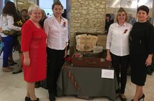 Творческий коллектив педагогов ( Абдуллина Л.К., Гайнанова Г.М., Шайдуллина З.А.) подготовили материал посвященный Великой Отчественной войне . Экспонаты которые были представлены на выставке были отданы в дар краеведческому музею МБДОУ детский сада№ 34 " Радуга" комбинированного вида Нигматуллиным А.З.( доцент, к.н. (доцент),Елабужский институт (филиал) КФУ), преподователем татарского языка и литературы Юсуповой Ф.Ш. Подленные документы и экспонаты ( найденные в раскопке в Синявских высотах под Ленинградом ) вызвали интерес и удивление у посетителей августовской конференции .