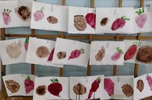 Сегодня во второй младшей группе № 2 прошло занятие по рисованию на тему» осенние сокровища". С детьми поговорили о овощах, обменялись мнениями о пользе овощей. Затем вместе с детьми на листе альбома с помощью гуаши сделали картошку и свеклу. Вот что получилось.