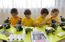 Для исследовательской деятельности была приобретена детская STEAM-лаборатория, микроскопы, набор микропрепаратов, методические пособия и многое другое для развития научно-исследовательской деятельности в детском саду. STEAM-лаборатория развивает творческие способности детей легко и быстро, повышает успеваемость в группе, позволяет эффективно работать с разновозрастными группами.