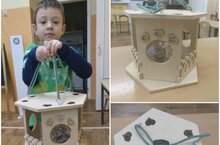 С наступлением зимы, птицам становится сложнее находить себе пропитание. Многие в детстве делали зимние кормушки для птиц, вырезая стенки в коробочках из-под сока или молока, и вешали их на веревочку за окошком. Но ветер сильно раскачивал такие кормушки, и в итоге вся еда для птиц высыпалась, и птички оставались голодными. Но это не значит, что кормушки бесполезны: просто важно делать их правильно. Смастерить такую кормушку своими руками совсем несложно, особенно учитывая, что ее можно сделать практически из любых материалов. Вот такую кормушку для пернатых друзей смастерил Артем со своим отцом.
