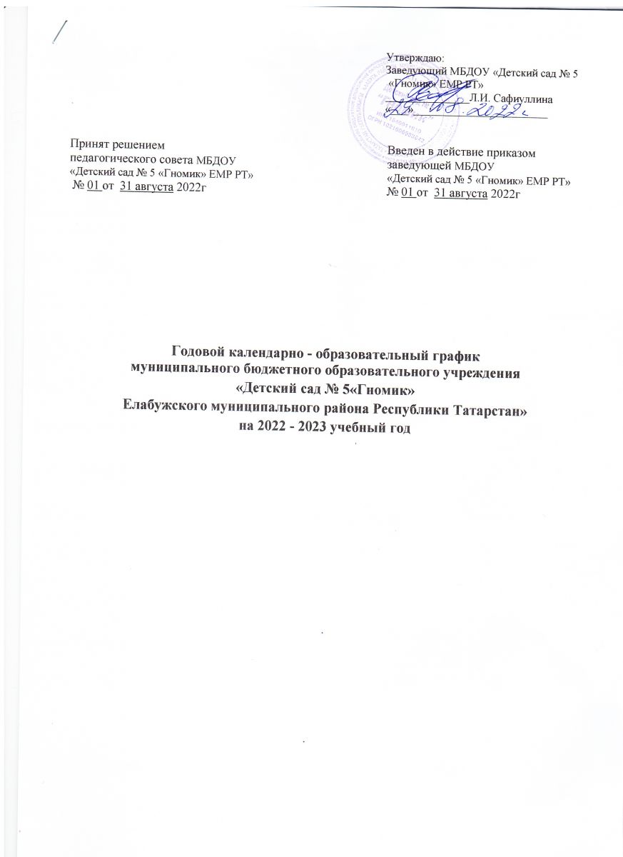 Календарно-образовательный график 2022-2023 МБДОУ №5.