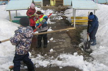 Субботник 07.04.2017 Воспитанники детского сада решили поддержать своих воспитателей в проведении субботников и начали активную борьбу со снегом на участке.