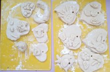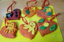 Вылепленные из соленого теста поделки, были высушены и раскрашены детьми. Получились яркие сувениры.Мамам подарки очень понравились. /